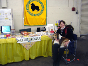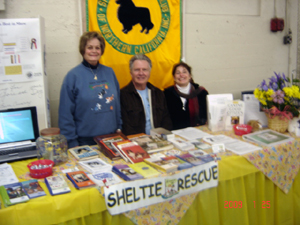 Rescue volunteers, Peggy, Roger and Julie worked the Sheltie table at the Golden Gate Kennel Club show at the Cow Palace on January 25, 2009. We visited with adopters who dropped by to say hello and met other lovers of the breed. A great opportunity to share our love of our wonderful breed.