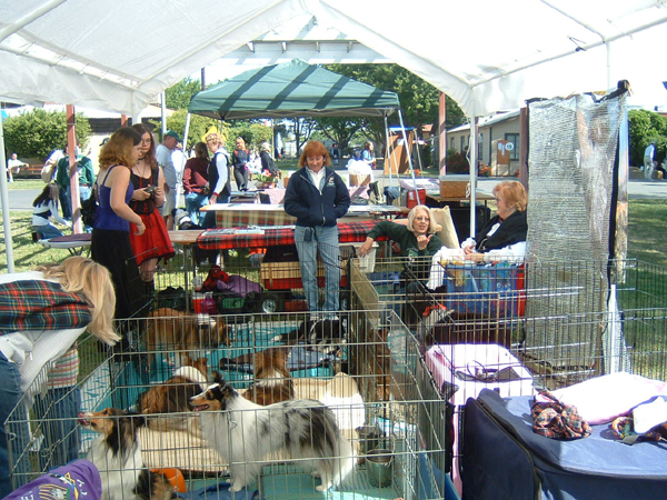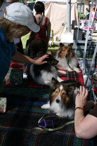 Sheltie Rescue had a terrific turn out at the 2009 Sacramento Caledonian Club's Scottish Games in Woodland. Photo taken during one of the few lulls in visitors stopping by to admire the many adopted shelties we brought.