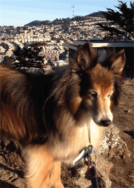 Cody was a delightful walking companion for San Francisco residents John and Nancy. He knew all of John friends they met during their treks and Cody was an expert at getting treats and pets from all of them. Deeply loved and sorely missed, Cody and John were a familiar pair in their neighborhood