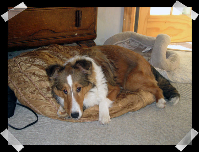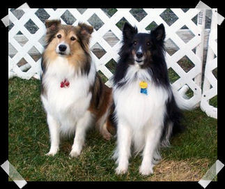Several years ago we adopted Rusty while visiting Palm Springs (Blonde Rusty is below Penny on the left.) He was very shy at first, then after a few months he warmed up to be the best dog we have had. He is truly a perfect dog, with one exception, we felt he needed a canine friend. So this year we were lucky enough to contact the NCSR. Gale Ann got back to us about Pennie, on top left. We (as with many of you) fell in love at first sight and when all of us went to visit her, Rusty's tail actually wagged. . . a little bit. Here we are a month later and the other day both dogs (who claim to be 10+ years old) were running around our house playing. We thank Sheltie Rescue everyday for bringing Pennie into our lives. When we told friends we were getting a dog named Pennie, they joked and said so you will have a Rusty Pennie! We like to say we have a LUCKY PENNIE with these two! Thanks, Jim/Don - Sacramento.